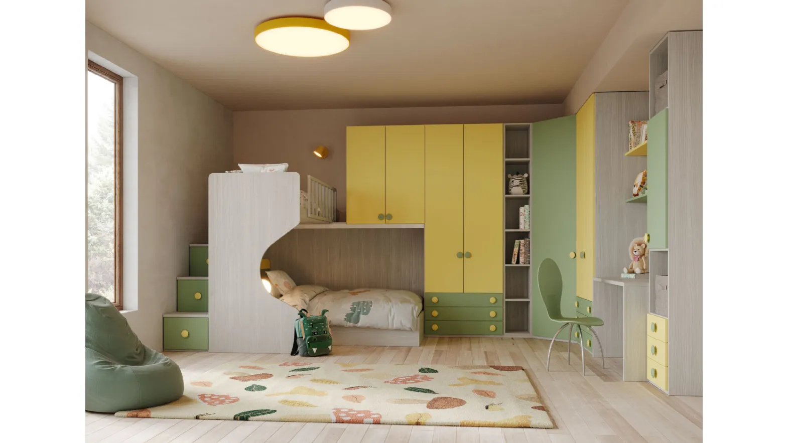 Le Camerette a soppalco per bambini del rinomato brand sono disponibili in molteplici versioni, che rispondono sempre alle richieste dei bimbi. Scopri nel nostro punto vendita la Cameretta a soppalco Fly CM 354 di Giessegi in melaminico: si adatta a ricreare ottimamente un ambiente accogliente, bello e ben organizzato. Materiali pregiati e pitture ecologiche contraddistinguono le proposte del brand, tra cui troverai anche quelle moderne a soppalco ideali per te. Gli accessori disponibili per le Camerette a soppalco di Giessegi sono sempre personalizzabili, per evitare qualsiasi problema di spazio e praticità. Se la stanza ha misure ridotte, sono differenti le soluzioni che Giessegi propone, sempre in grado di coniugare funzionalità ed ergonomia.