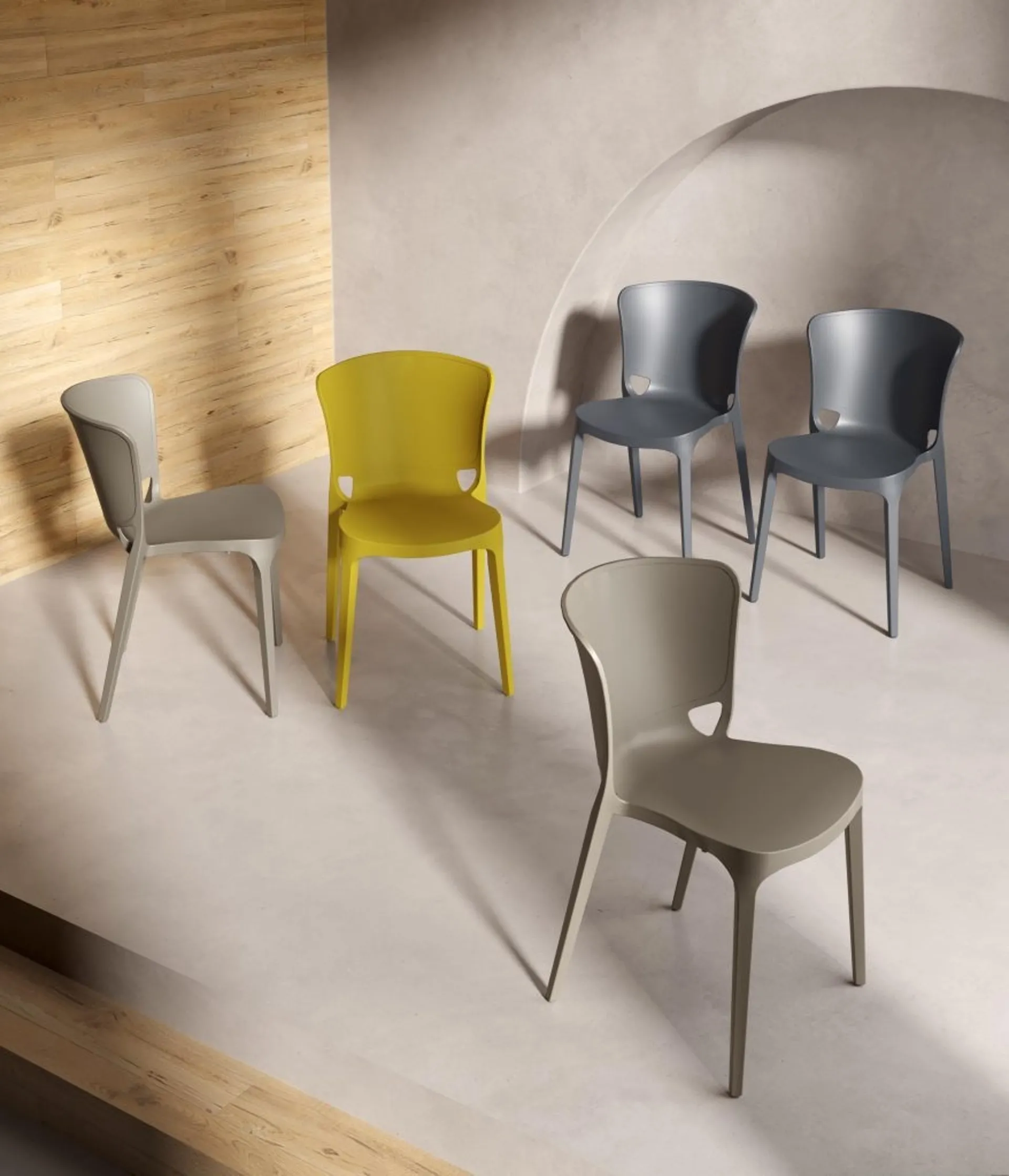 Se vuoi una sedia in plastica per impreziosire l’atmosfera di casa, ottieni informazioni sul modello in foto e trova un tavolo abbinato. Una vasta scelta di sedute impilabili da cucina ti sta aspettando in negozio: contattaci per informazioni e preventivi e ottimizza i tuoi locali con l'eccellenza che solo MaxHome sa garantirti per mobili e oggetti accessori. Nel living o nella zona cucina, le Sedie sono arredamenti essenziali: sottolineano il mood dell'ambiente e svolgono un ruolo imprescindibile. Il living e la zona cucina non sono davvero accoglienti e confortevoli se arredati con le Sedie sbagliate, ecco perché occorre che siano abbinate al resto degli arredi e alle misure della stanza. Sedia impilabile Aura di MaxHome: questo modello andrà a completare spazi di ogni genere, in modo particolare ambientazioni moderne.