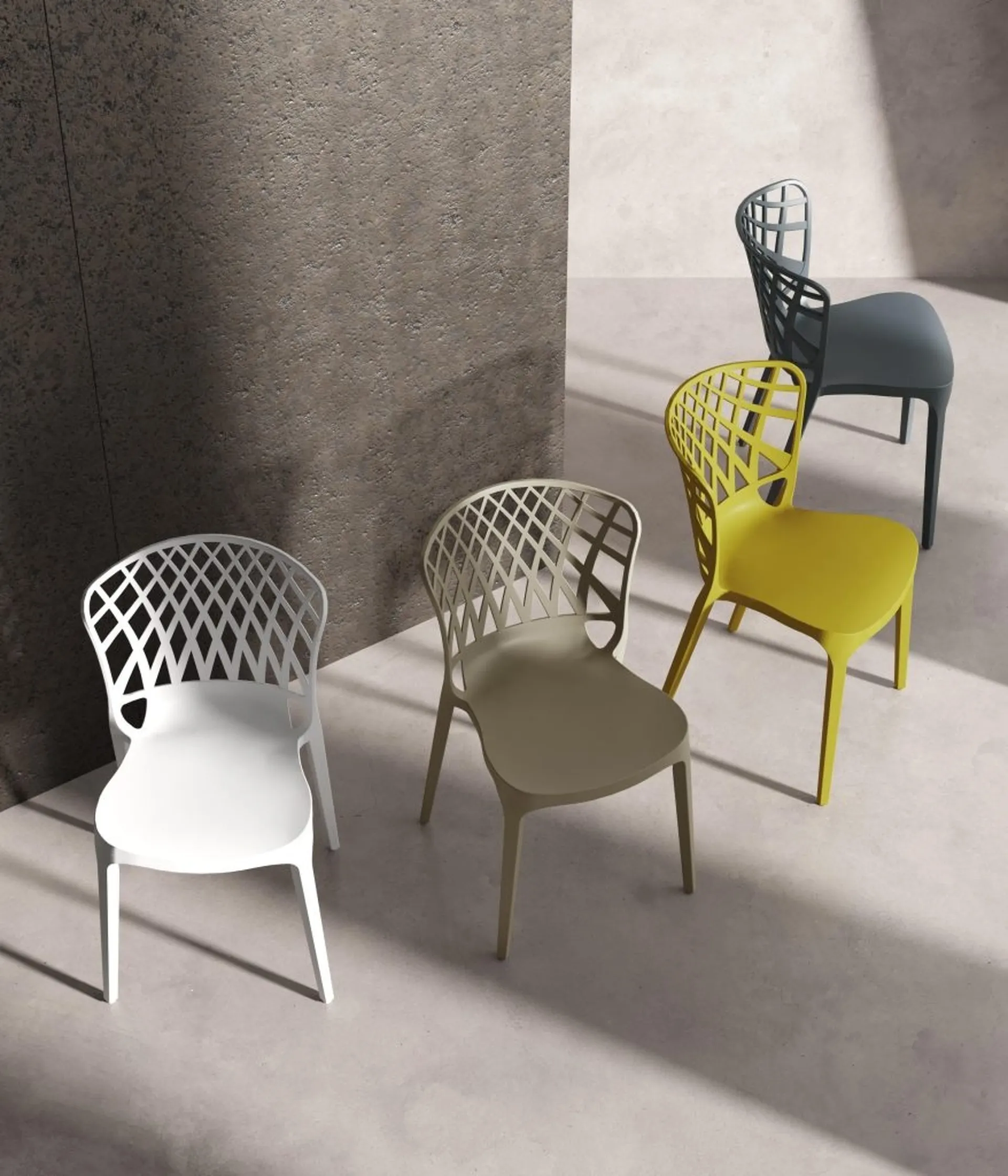 Sedia impilabile Mabel di MaxHome: questo modello andrà ad impreziosire spazi di ogni genere, specialmente atmosfere moderne. Il soggiorno e la zona cucina non sono davvero piacevoli e confortevoli se arredati con le Sedie sbagliate, ecco perché occorre che siano abbinate al resto degli arredi e alle dimensioni della stanza. Una grande varietà di sedie impilabili da cucina ti attende nel nostro showroom: contattaci per informazioni e preventivi e ottimizza i tuoi locali con la qualità che solo MaxHome sa assicurarti per mobili e complementi. Nel soggiorno o nella zona cucina, le Sedie sono mobili essenziali: valorizzano il mood del locale e svolgono una funzione essenziale. Se desideri una sedia in plastica per impreziosire l’ambiente di casa, scopri di più sul modello nella fotografia e trova un tavolo in abbinamento.