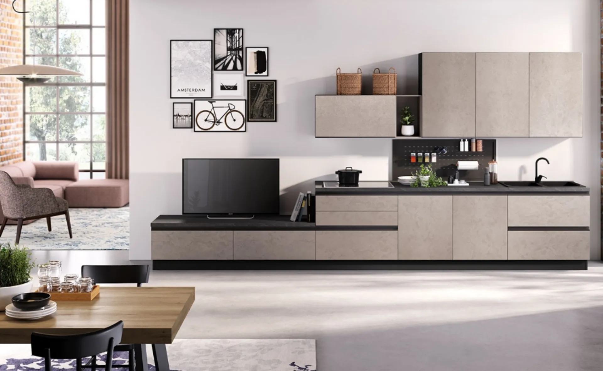 Ti aspettano differenti proposte moderne in linea per la zona cucina, ideali per chi cerca uno spazio accogliente, semplice e immediato ma contemporaneo nello stile. Se sei alla ricerca di una soluzione dalle linee essenziali, caratterizzata da un design meno "pesante", ti consigliamo di orientare l'acquisto verso le Cucine Moderne della firma Net Cucine. A rendere la Cucina Moderna Zoe Fango Cemento di Net Cucine una tra le più originali soluzioni della firma, oltre ai suoi bellissimi motivi, è il materiale: è realizzata in Pet per garantire comfort e affidabilità nel tempo. Quando scegli una cucina moderna devi dare priorità al modo in cui vivi i tuoi spazi, per arredare perfettamente la tua composizione d’arredo.